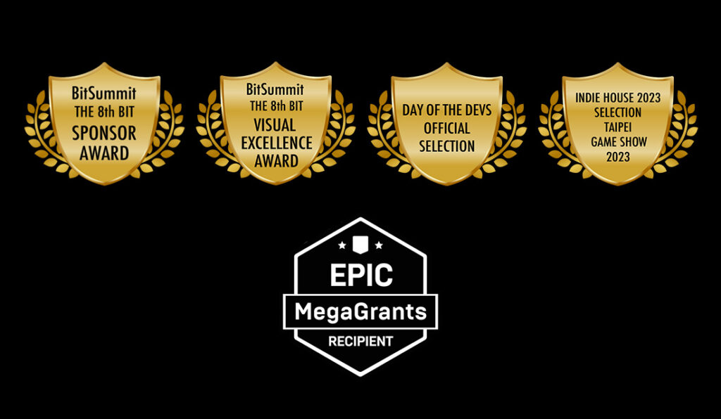 ●BitSummit THE 8th Bit スポンサーアワード●BitSummit THE 8th Bit ビジュアルエクセレンス アワード●DAY OF THE DEVS オフィシャルセレクション●INDIE HOUSE 2023 TAIPEI GAME SHOW 2023